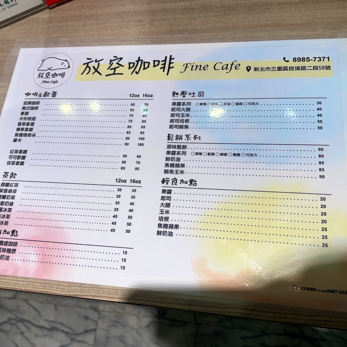 Welcome to 放空咖啡 Fine Cafe, a charming escape located in New Taipei City. This cozy cafe offers a delightful menu that is sure to please both coffee lovers and casual diners alike.